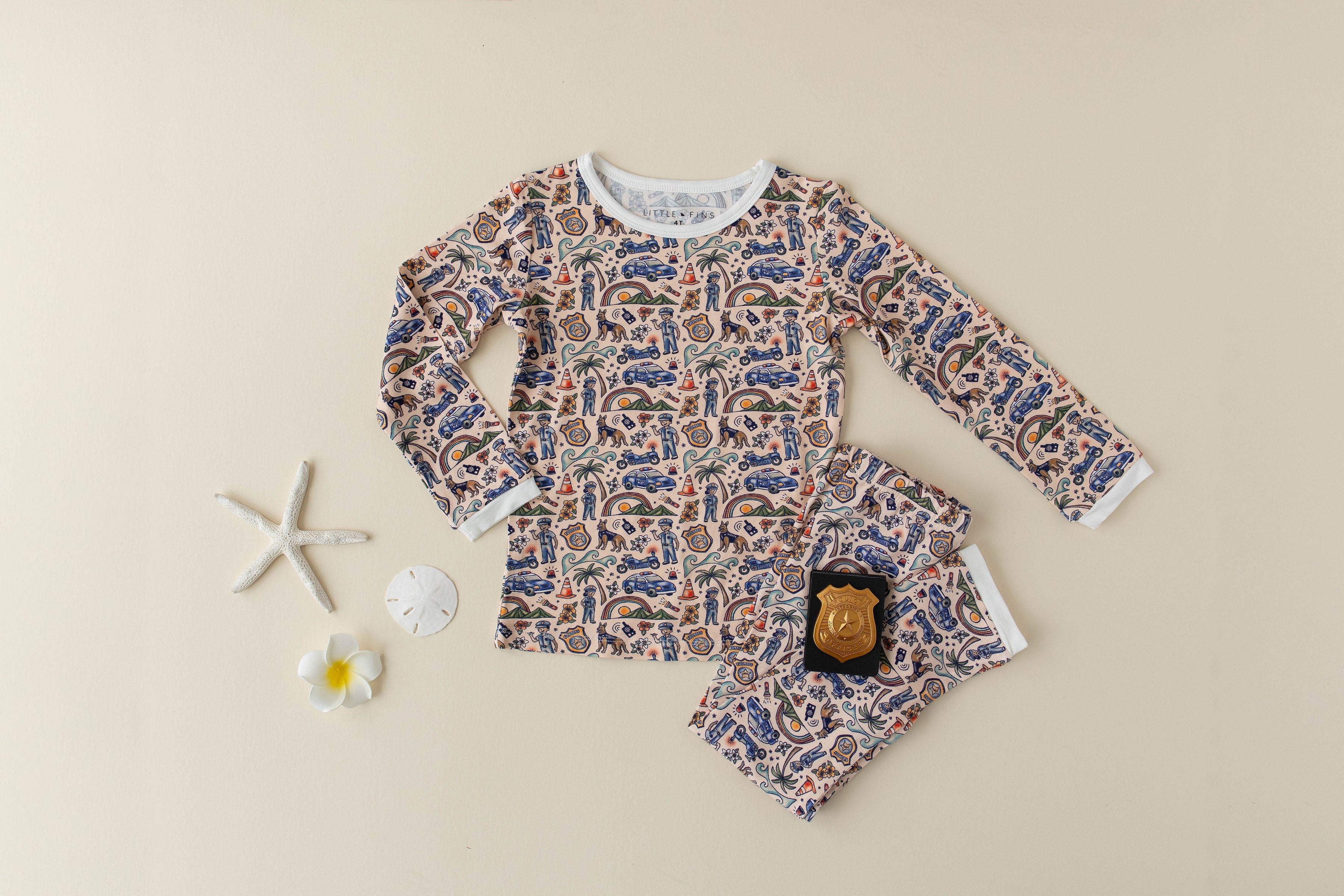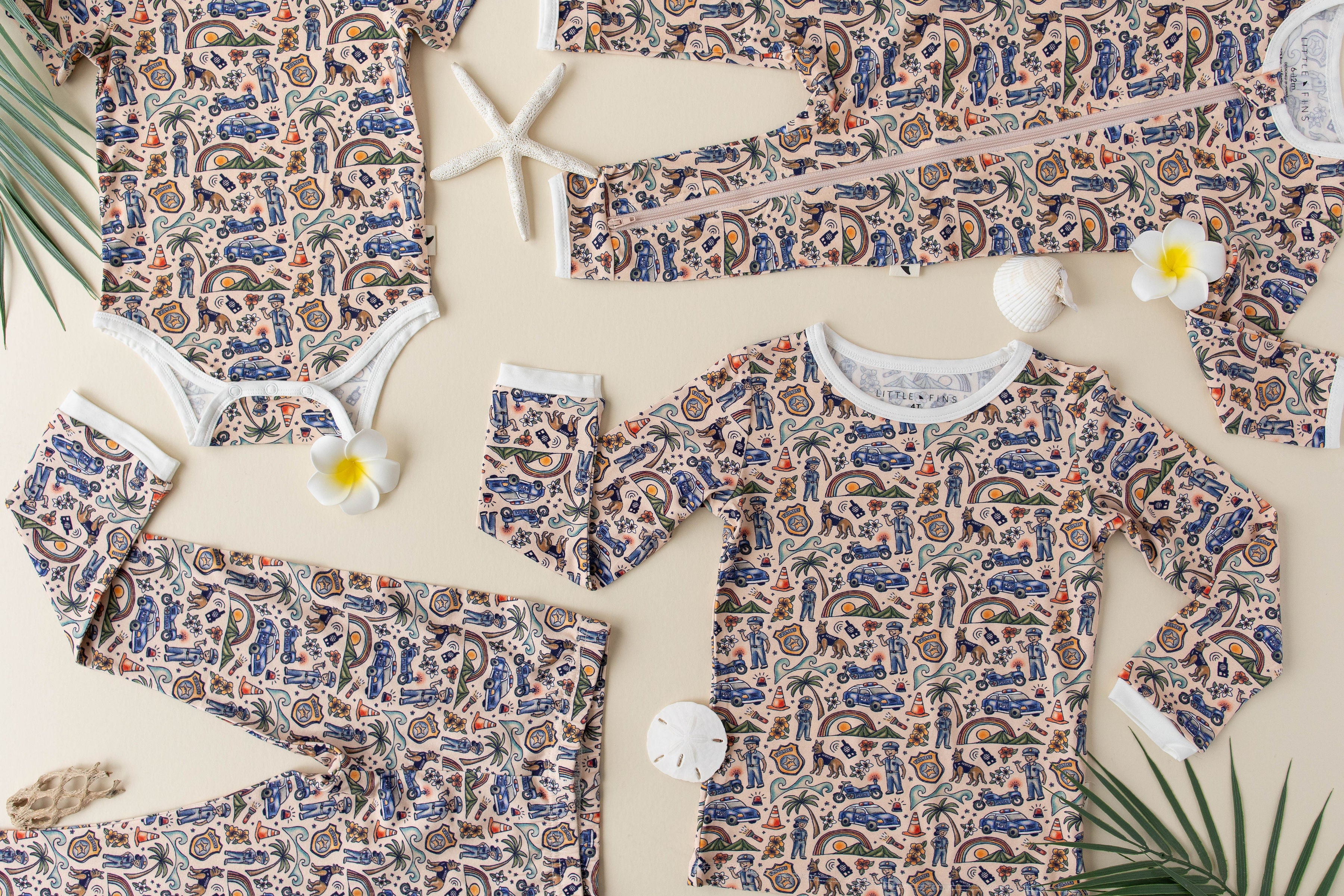 Our new Patrol Pals toddler set brings adventure and comfort together. Designed right here in Hawai‘i, the playful police print sparks imagination while ultra-soft, breathable bamboo rayon keeps your little keiki cool, cozy, and moving freely. Perfect for racing to imaginary rescues, exploring the world, and drifting into dreamy nights, these pajamas are gentle on skin, kind to the planet, and made for little heroes with big imaginations.